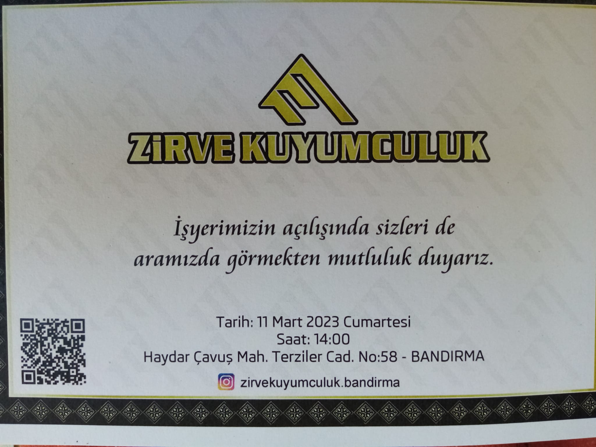 Zirve Kuyumculuk 11 Mart Cumartesi Saat : 14:00’da açılışına tüm halkımız davetlidir.
